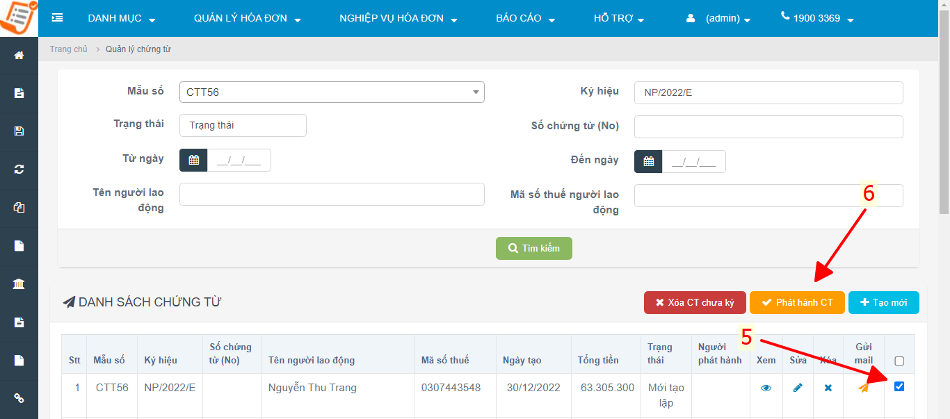 **Bước 3: Chọn chứng từ cần phát hành và ký số**