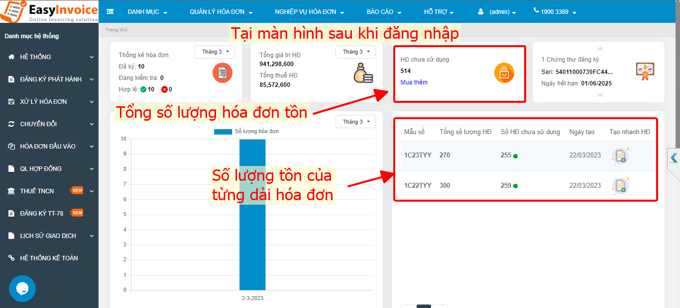 # Kiểm tra số lượng hóa đơn EasyInvoice còn lại